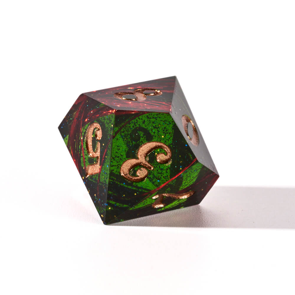 Hand-crafted from beginning to end, vartgamedice’s sharp-edged resin dnd dice set feature gorgeously hand-painted numbers. These liquid resin dice set are ideal for any tabletop RPG game and are sure to impress at your upcoming session!