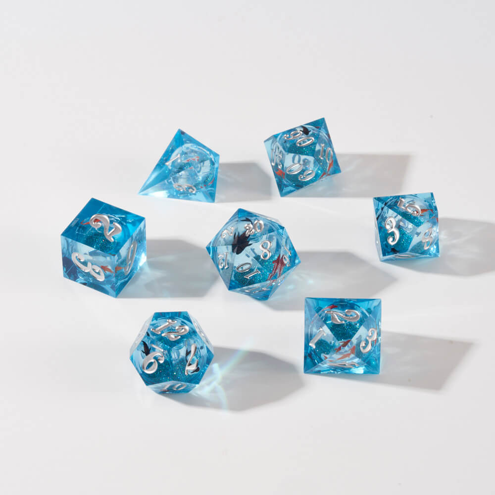 Blue Koi Liquid Core Dice Set 7pcs Waterproof Sharp Edge Dice For Board Game(RD24072)