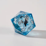 This blue cross red liquid core dice set is mainly in bright red. Red symbolizes passion, courage and strength. Under the transparent resin shell of the dice, the red liquid is like a burning flame. It contains endless vitality and energy. And the clever blue elements integrated into it as embellishments or gradients. It adds a touch of calmness and depth to the dice. Make the overall color richer and more layered.