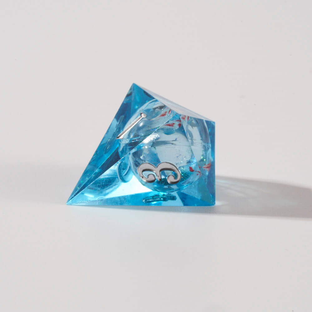 This blue cross red liquid core dice set carefully crafted with high-quality resin materials. The texture of the resin is light and strong, ensuring the durability and stability of the dice. At the same time, the transparent texture of the resin forms a perfect combination with the red liquid and smoke pattern inside. Let the dice present an elegant and mysterious beauty as a whole.