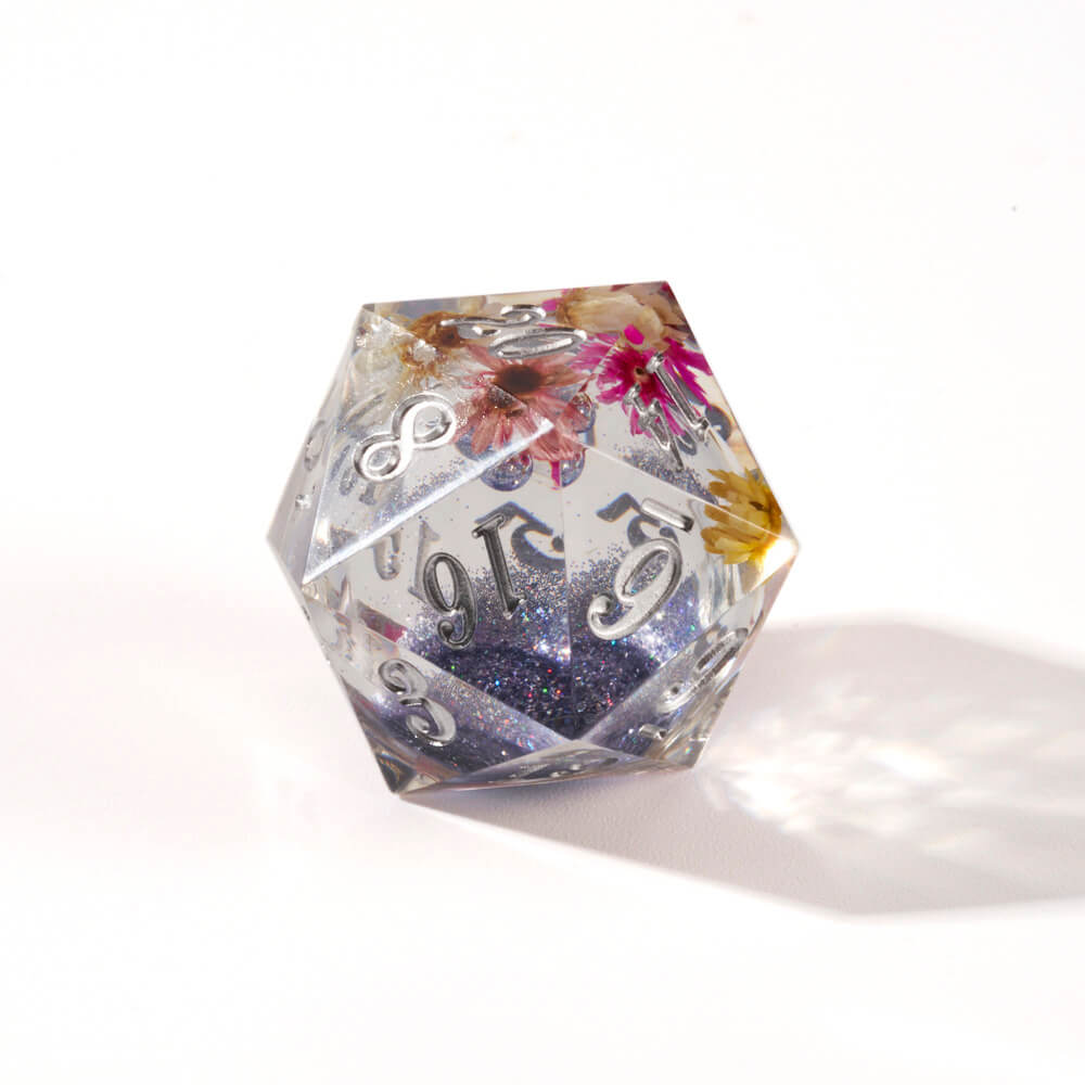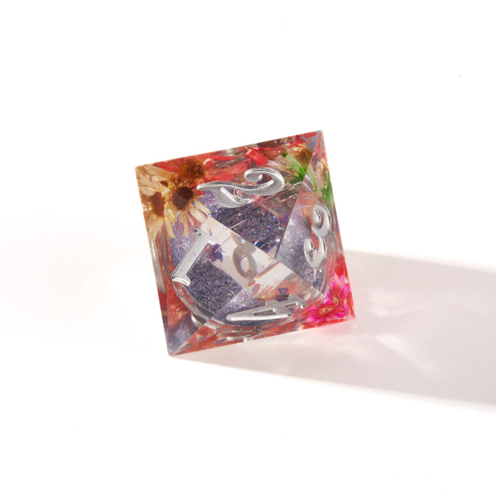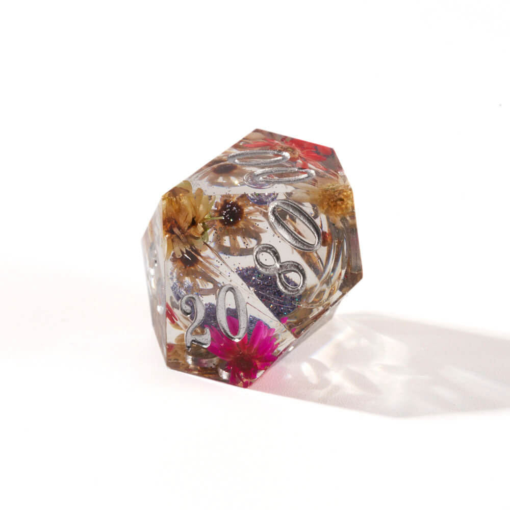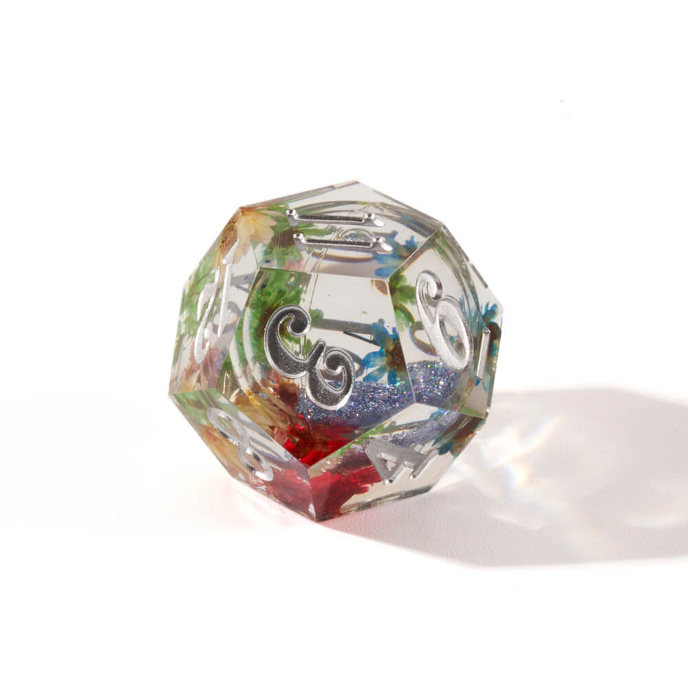 Transparent Dried Flower Sharp Edge Dice DND Resin Dice Set 7pcs Polyhedral Dice Set(RD024)