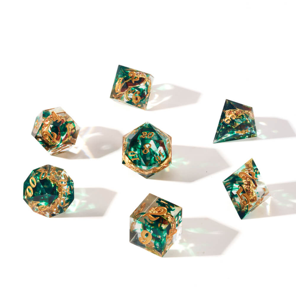 Transparent Green Sharp Edge Dice DND Resin Dice Set 7pcs Polyhedral Dice Set(RD015)