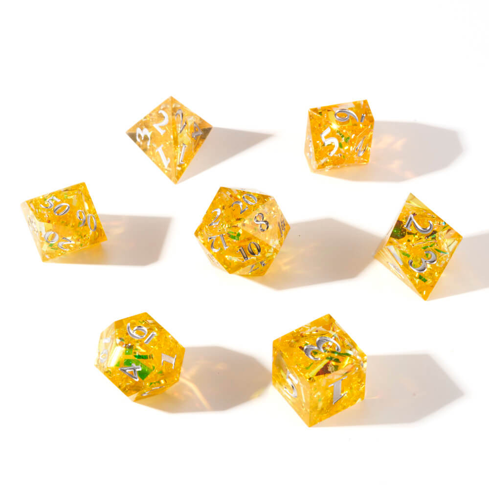Yellow Ice Crystal Dice Set for Dungeons & Dragons D&D Acrylic RPG Cthulhu Tabletop Role-Playing Game Digital Dice(RD021)